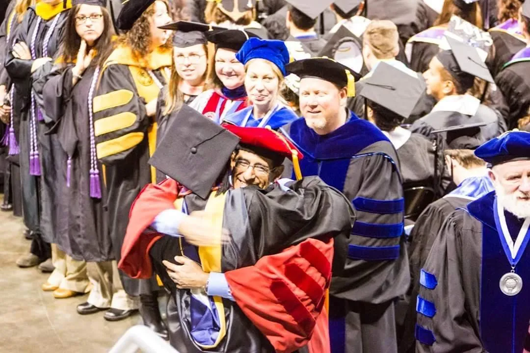 Dr. Vazquez congratulating one of his students at the University of Nevada,